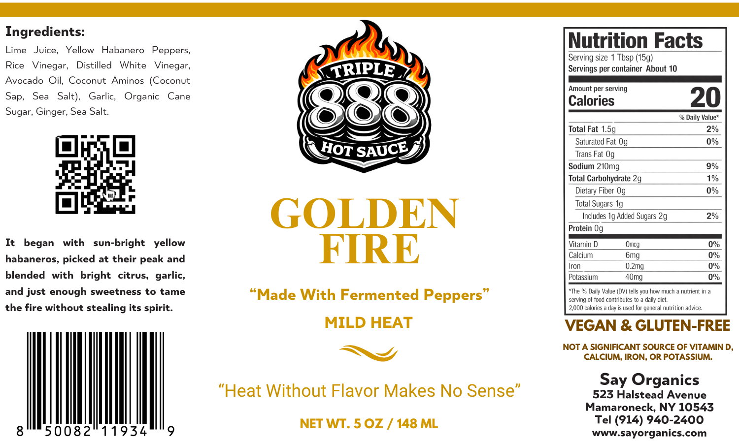 Born from sun-bright yellow habaneros blended with citrus, garlic, and balanced sweetness, Golden Fire™ turns everyday meals into unforgettable moments. Drizzle it. Cook with it. Marinate with it.