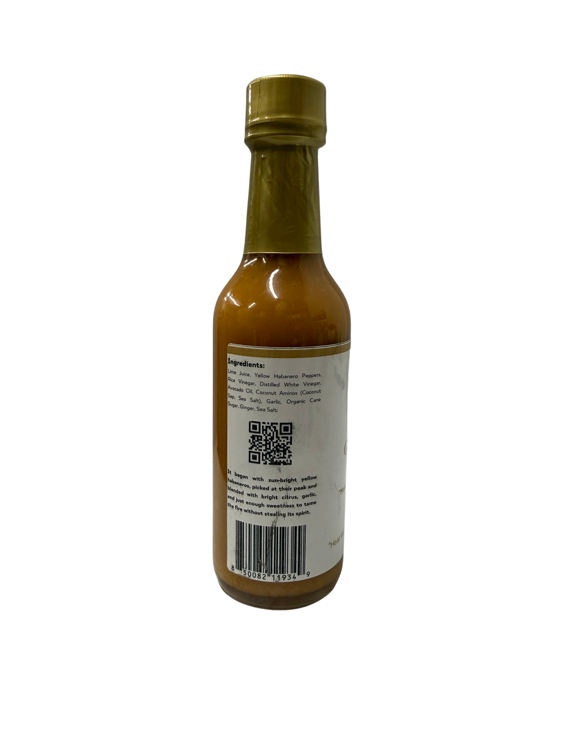 Ingredients: Lime Juice, Yellow Habanero Peppers, Rice Vinegar, Distilled White Vinegar, Avocado Oil, Coconut Aminos (Coconut Sap, Sea Salt), Garlic, Organic Cane Sugar, Ginger, Sea Salt.